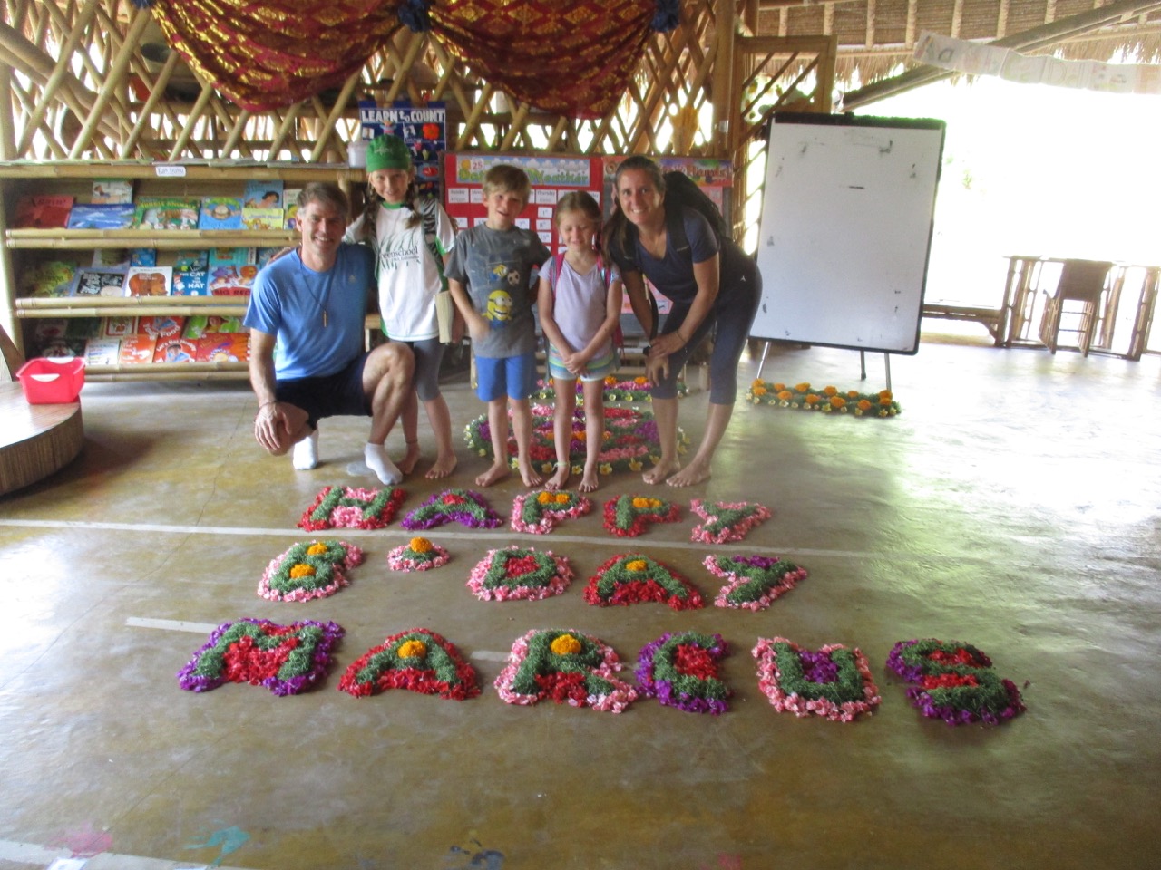 A detail of the flower arrangements made by Ibu Kadek in Marcus' class to welcome him on his birthday